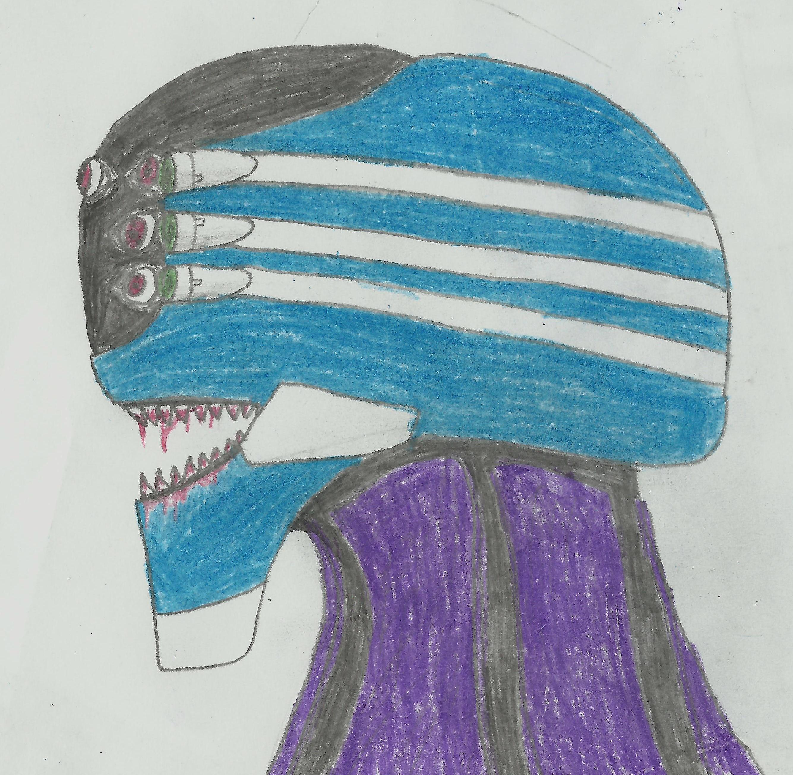 Заставила рисовать и это. Говорит ее ЕВА очень любит пожирать врагов, а потом входить в берсерка(зеленые глазки начинают мигать красным) и еще активнее пожирать врагов. Мелкость камер заметил поздновато.