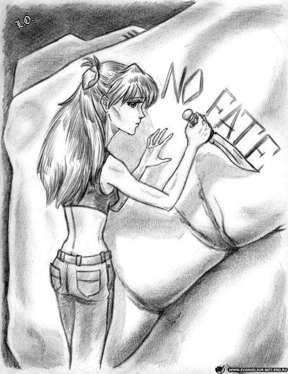 "Нет судьбы!" - эти слова из старого фильма Аска ножом выцарапала на руке своего Евангелиона. Надпись осталась даже после боя с серийками. Но судьба рыжему пилоту уготовила иную участь...