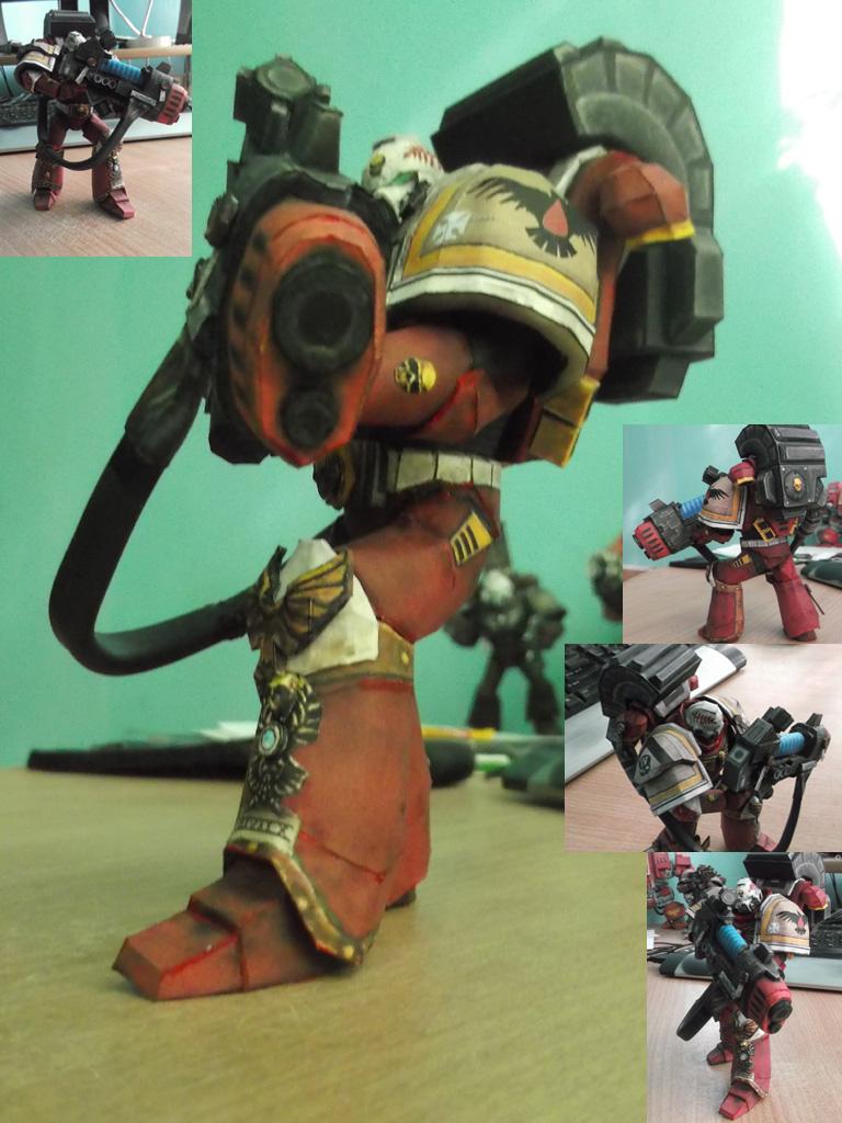 Наконец добрался до моделек из второго ДоВа. По детализации, пропорциям и опциональным украшательствам - заведомо лучше сделаны. Плюс - ещё хорошо подобрана поза: нет проблем с устойчивостью. Раскройка модели была годной, за исключением плазмагана - он изначально был кривоват, и приходилось по возможности поправлять его. Ну и питающий кабель из куска оплётки перцу добавил - у него выскочили проблемы с фиксацией формы, потому уже в процессе пришлось его укреплять.