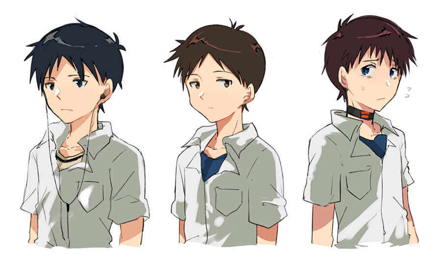 У Синдзи из манги были карие глаза, но его майка была желтой с полосой, как, у первого Синдзи, а не синей.