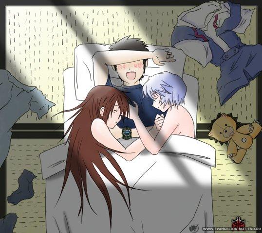 Ну. В кадре Аянами, значит, это Син, поскольку с другим она бы не легла в постель. В кадре Син, значит, рядом с ним Аска, потому что она бы не позволила Аянами так просто увести "этого баку".
