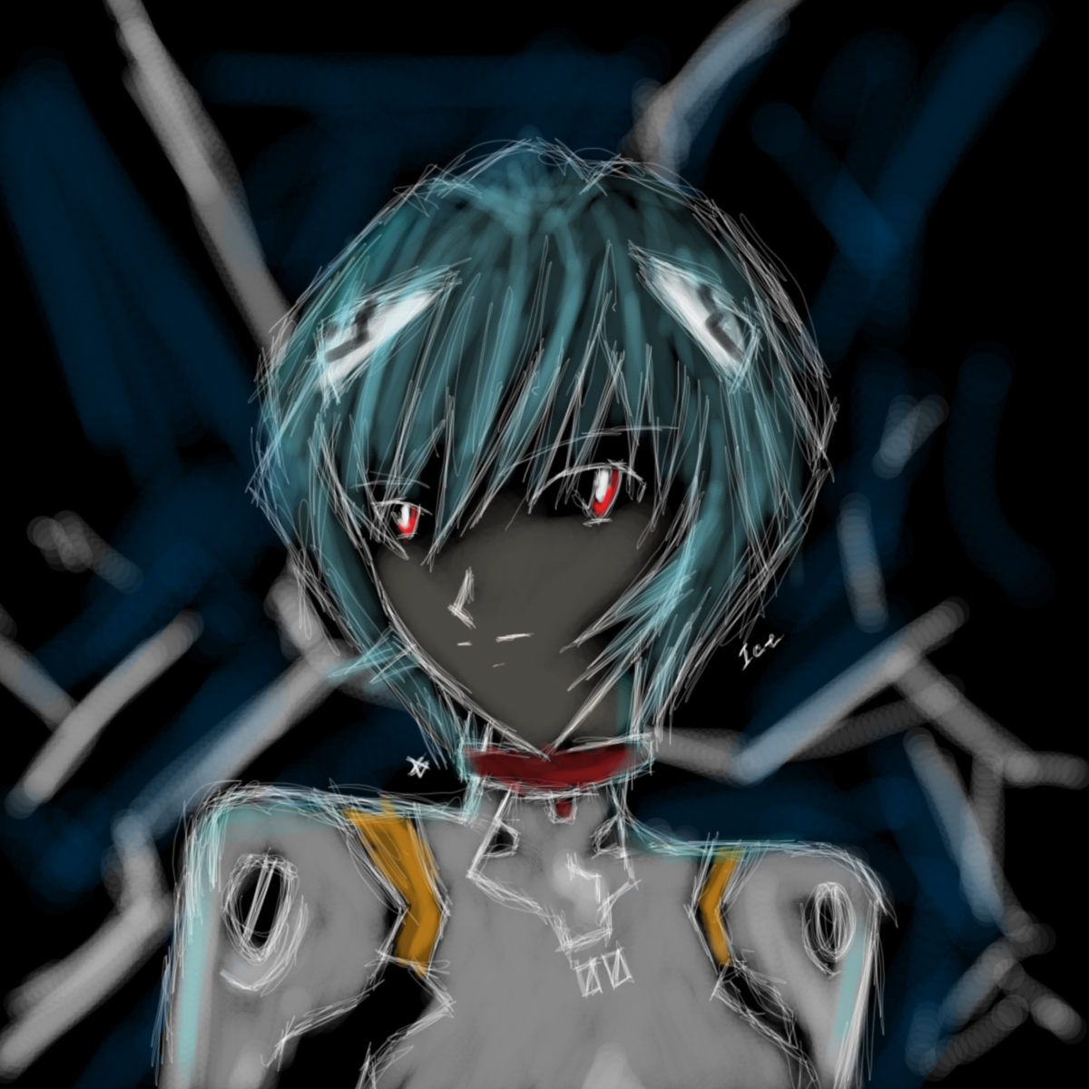 На этой работе я пыталась показать схожесть Аянами со льдом... вот такая вот идея мне пришла внезапно в голову. Получилось ли сравнение? Решать вам